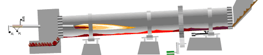 El material se introduce en el horno por la parte trasera (extremo superior). Debido a la inclinación y la lenta rotación del cilindro, el material avanza gradualmente mientras gira axialmente y radialmente. El combustible se inyecta en el horno a través del quemador situado en la parte delantera (extremo inferior) para su combustión. El calor se transfiere al material por radiación y conducción. Durante su movimiento, el material forma una fase líquida, generando minerales como silicato tricálcico, silicato dicálcico, aluminato tricálcico y aluminoferrita tetracálcica. Una vez completado el proceso de sinterización, se forma el clinker, que se descarga por la parte superior del horno.