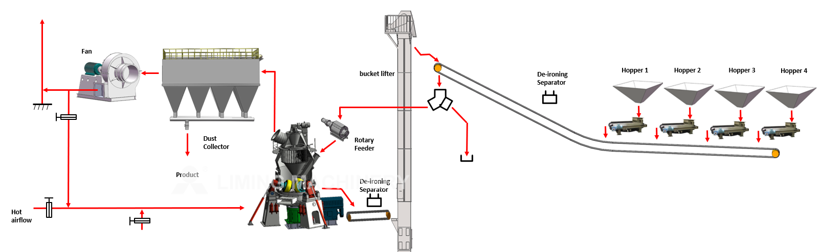 Debido a la compleja composición, el alto contenido de humedad y las diferencias significativas en la capacidad de molienda de las materias primas, Liming Machinery ha dedicado más de veinte años al desarrollo del equipo de molienda de bajo consumo LMR, que integra secado, molienda, clasificación y transporte. Este equipo presenta ventajas tales como alta eficiencia de molienda, bajo consumo de energía, gran tamaño de las partículas de alimentación, finura del producto fácilmente ajustable, flujo de proceso sencillo, tamaño reducido, bajo nivel de ruido, baja emisión de polvo, fácil operación y mantenimiento, bajos costos operativos y bajo consumo de materiales resistentes al desgaste. El rendimiento general del producto alcanza niveles avanzados a nivel internacional, satisfaciendo las necesidades de molienda industrial a gran escala, inteligente e intensiva. La capacidad de producción máxima puede alcanzar las 550 t/h, satisfaciendo las necesidades de suministro de materia prima de las líneas de producción de cemento con una capacidad de 200-2500 t/d.